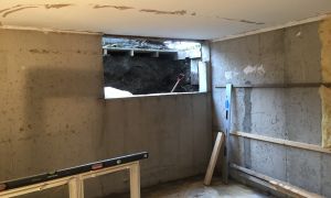 Etter vannlekasje, måtte panel og alt ut fra kjellerstua. Da var det naturlig å utvide det gamle vinduet til sikker rømningsvei.